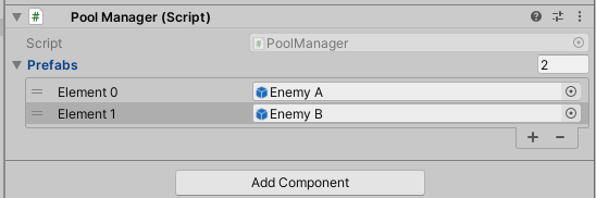 - 생성한 Spawner에서 PoolManager에 쉽게 접근할 수 있도록 GameManager 스크립트 파일에 PoolManager 변수를 추가.