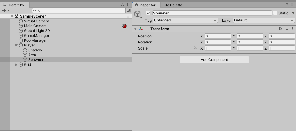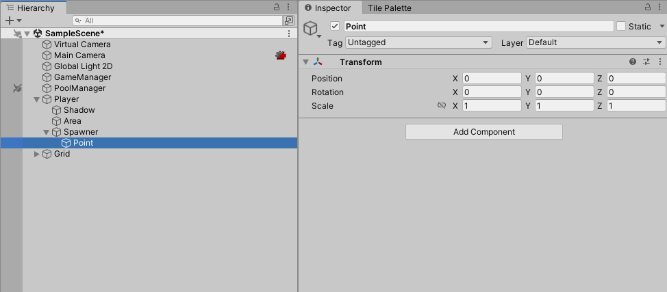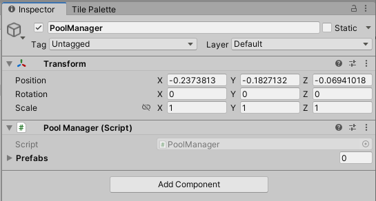 - 앞선 PoolManager 스크립트에서 구현한 프리펩 생성 위치는 그냥 PoolManager 오브젝트의 위치, 즉 0, 0, 0에서 생성되도록 만들었다.