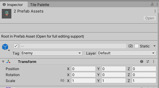 - 그러나 이렇게하고 테스트해볼 경우, 생성된 몬스터(프리펩)는 플레이어를 따라오지 않는다. 프리펩은 Scene에 있는 오브젝트를 접근할 수 없기 때문이다.