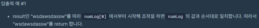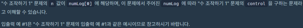 주어진 정수 배열 numLog에 대해 조작을 위해 입력받은 문자열을 return 하는 solution 함수를 완성해 주세요.