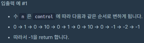 정수 n과 문자열 control이 주어집니다.