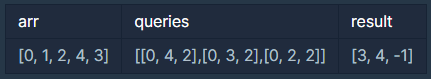 각 query마다 순서대로 s ≤ i ≤ e인 모든 i에 대해 k보다 크면서 가장 작은 arr[i]를 찾습니다.