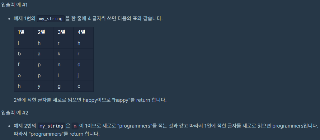 프로그래머스 코딩 기초 트레이닝 : 세로 읽기