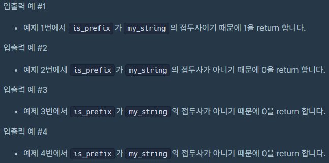 - my_string과 is_prefix는 영소문자로만 이루어져 있습니다.