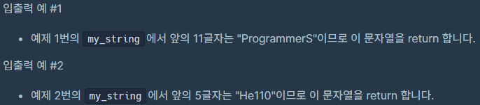 프로그래머스 코딩 기초 트레이닝 : 문자열의 앞의 n글자