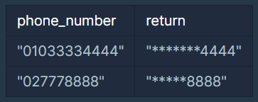 - phone_number는 길이 4 이상, 20이하인 문자열입니다.