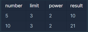 - 1 ≤ power ≤ limit